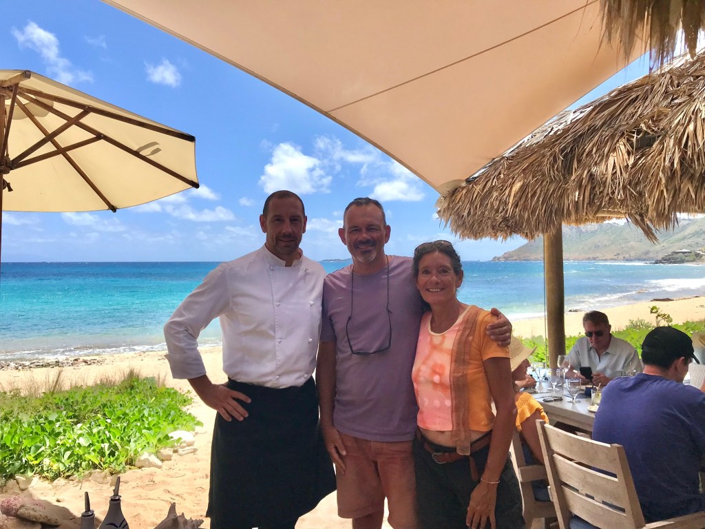 Sylvain a le plaisir de revoir un de ses cousins, grand chef dans un relais-château. On y est allé pour un déjeuner sur la plage… on s’est régalé ! Partager avec un résident et recueillir ses impressions, permettent d’avoir une vision plus précise que celle du touriste que nous sommes. Eric expliquait que les Saint-Barthinois ont une mentalité bien différente des autres îles françaises : ils se retroussent les manches après les différents cyclones, sont réactifs pour rebondir au plus vite et n’attendent rien de la métropole. Ils assument leur indépendance et en sont fiers. Malgré la fréquentation très haut de gamme, Eric nous confirme que l’esprit sur l’île reste simple. En revanche, il est de plus en plus difficile de s’y loger, les propriétaires préférant faire de la location saisonnière. Comme souvent sur les îles, la vie y est chère, mais la fiscalité ici est très avantageuse (pas de TVA, exonération totale de l’impôt sur le revenu au bout de 5 ans).