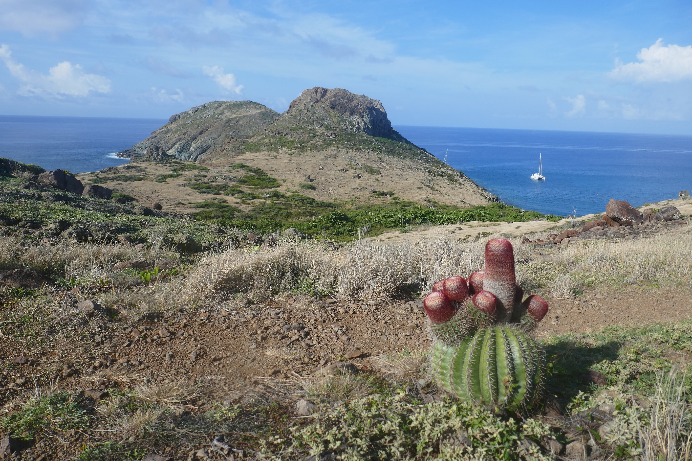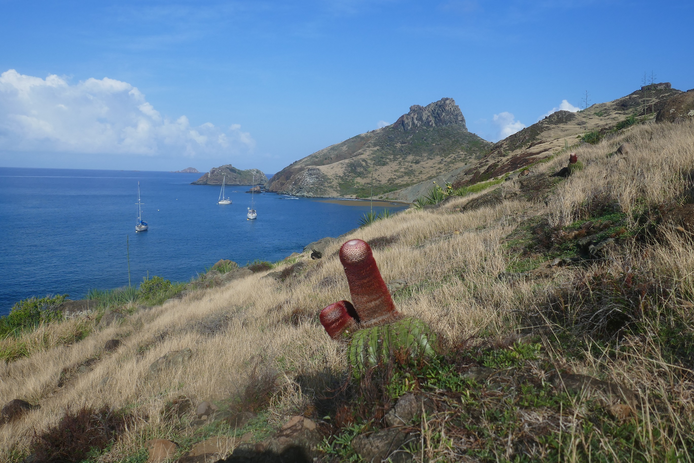 Avant de continuer notre remontée vers le Nord, nous faisons escale à l’île FOURCHUE, sauvage et inhabitée, tapissée d’une espèce endémique de cactus : le cactus « tête à l’anglais ».