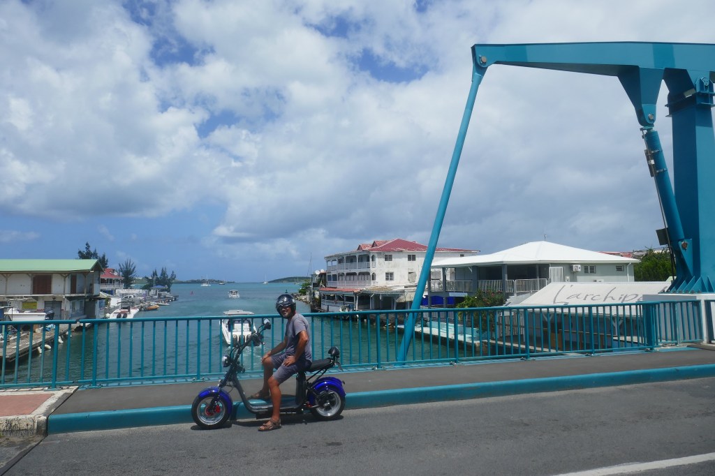 Saint-Martin que nous avons tenté de parcourir en scooter électrique… n’est pas une île exceptionnellement belle, mais pratique pour faire l’avitaillement du bateau et le plein d’eau, avant de nous rendre aux Iles Vierges Britanniques (BVI) sauvages avec très peu de commerces…