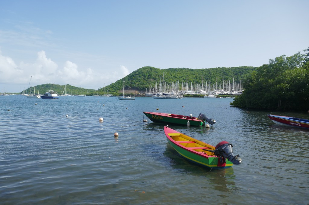 Après avoir terminé notre mission avec les associations caritatives, nous quittons le port de Saint-Georges pour aller explorer les « trous à cyclone » au Sud de Grenade. En arrivant, nous sommes effarés par le monde, et avons quelques difficultés à trouver un endroit pour poser l’ancre…