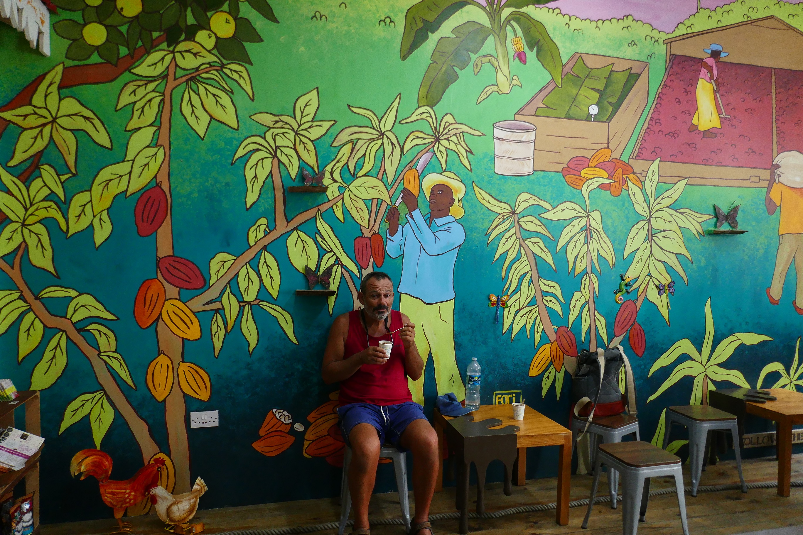 L’île produit du cacao… découverte de la maison du chocolat avec dégustation (glace chocolat-coco, brownie, thé au cacao). Un délice !