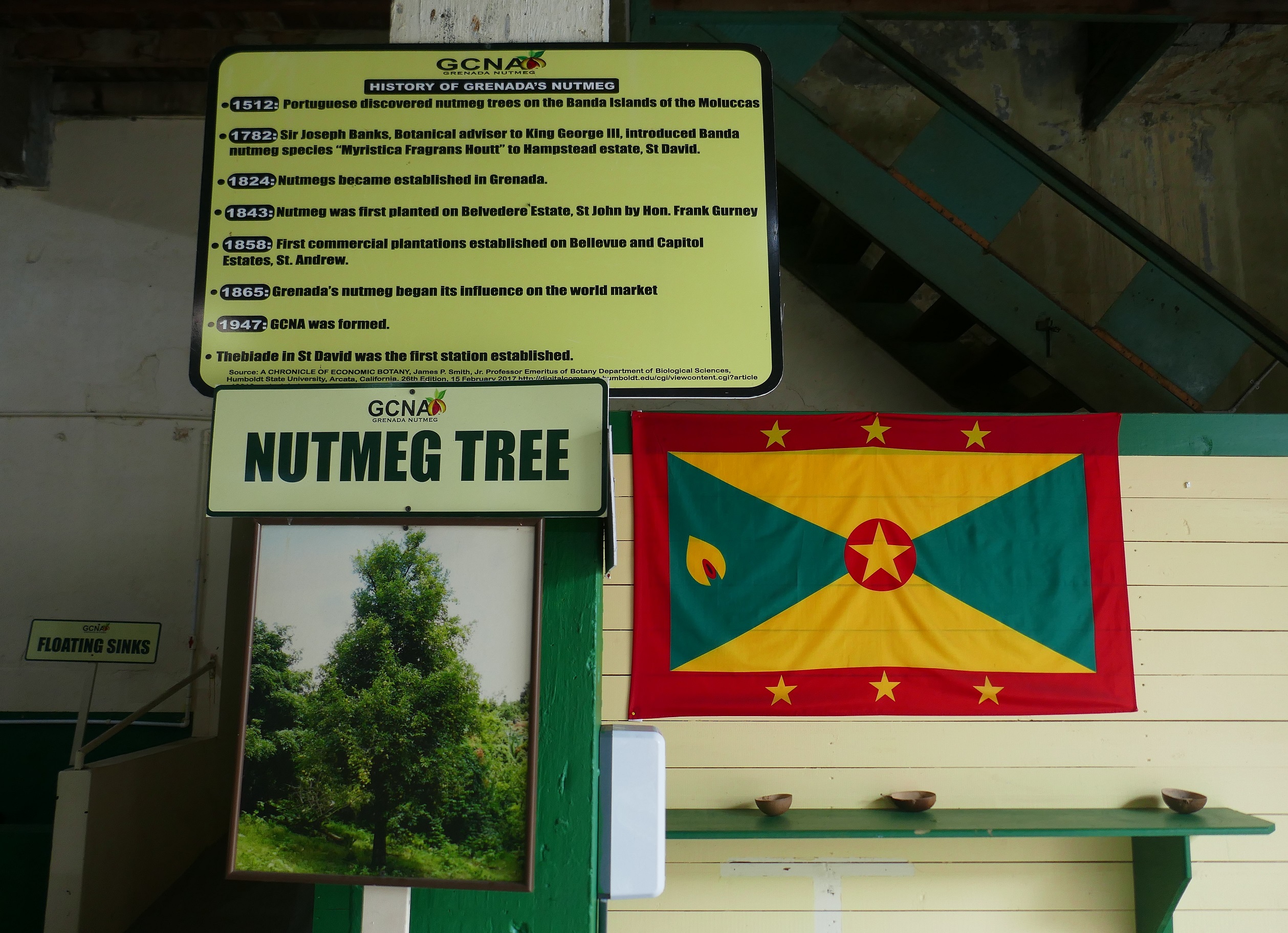 Grâce à un excellent musée dans le village de Victoria, nous apprenons le processus de traitement de la noix de muscade, introduite par les anglais en 1782 (on la retrouve sur le drapeau de Grenade).