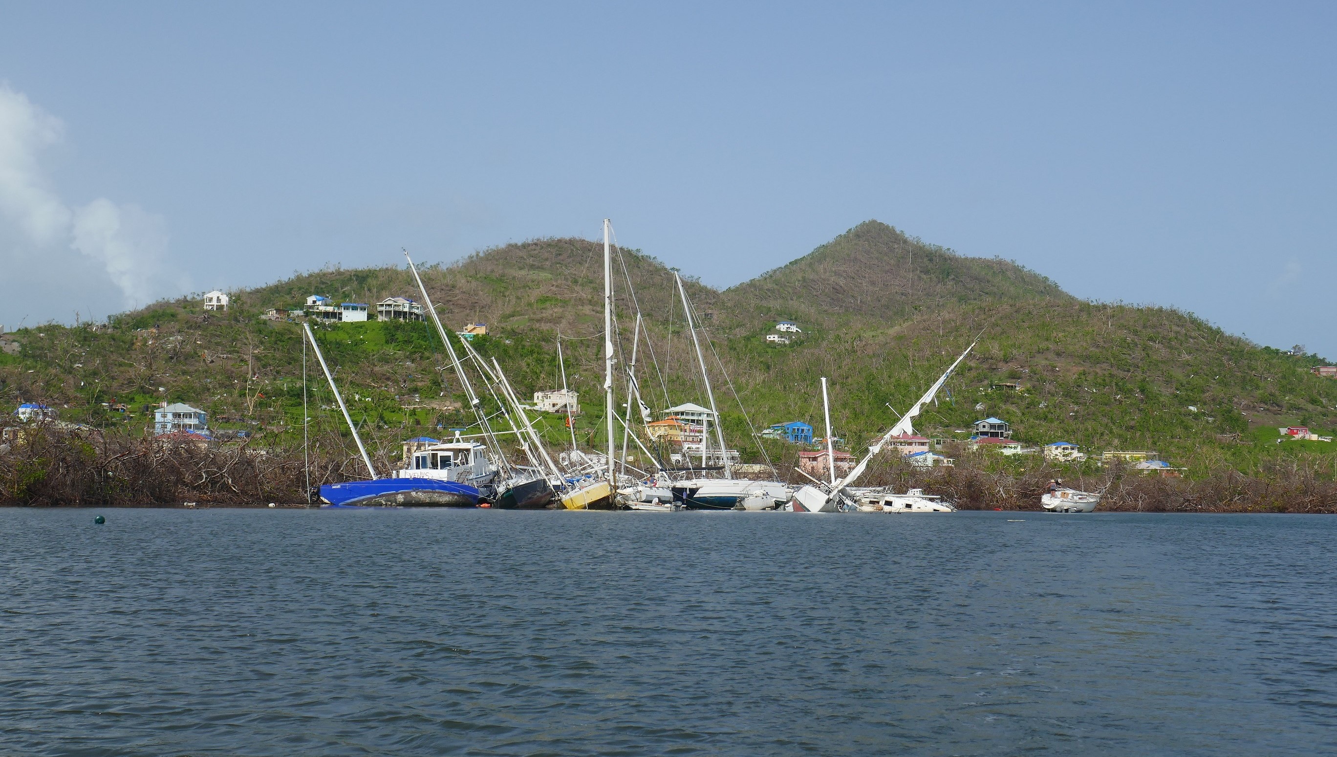 Sur la route du retour pour Saint-Vincent-et-les-Grenadines, nous faisons une escale à mi-chemin sur l’île de Carriacou, où l’oeil du cyclone est passé.