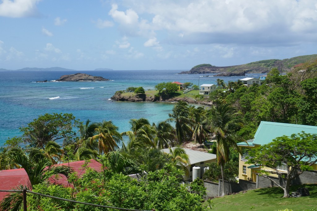 Après 7H de navigation au près avec 2 ris dans la Grand Voile et un Génois enroulé, nous mouillons dans la grande baie d’Admiralty Bay, devant la ville typique de Port Elizabeth.