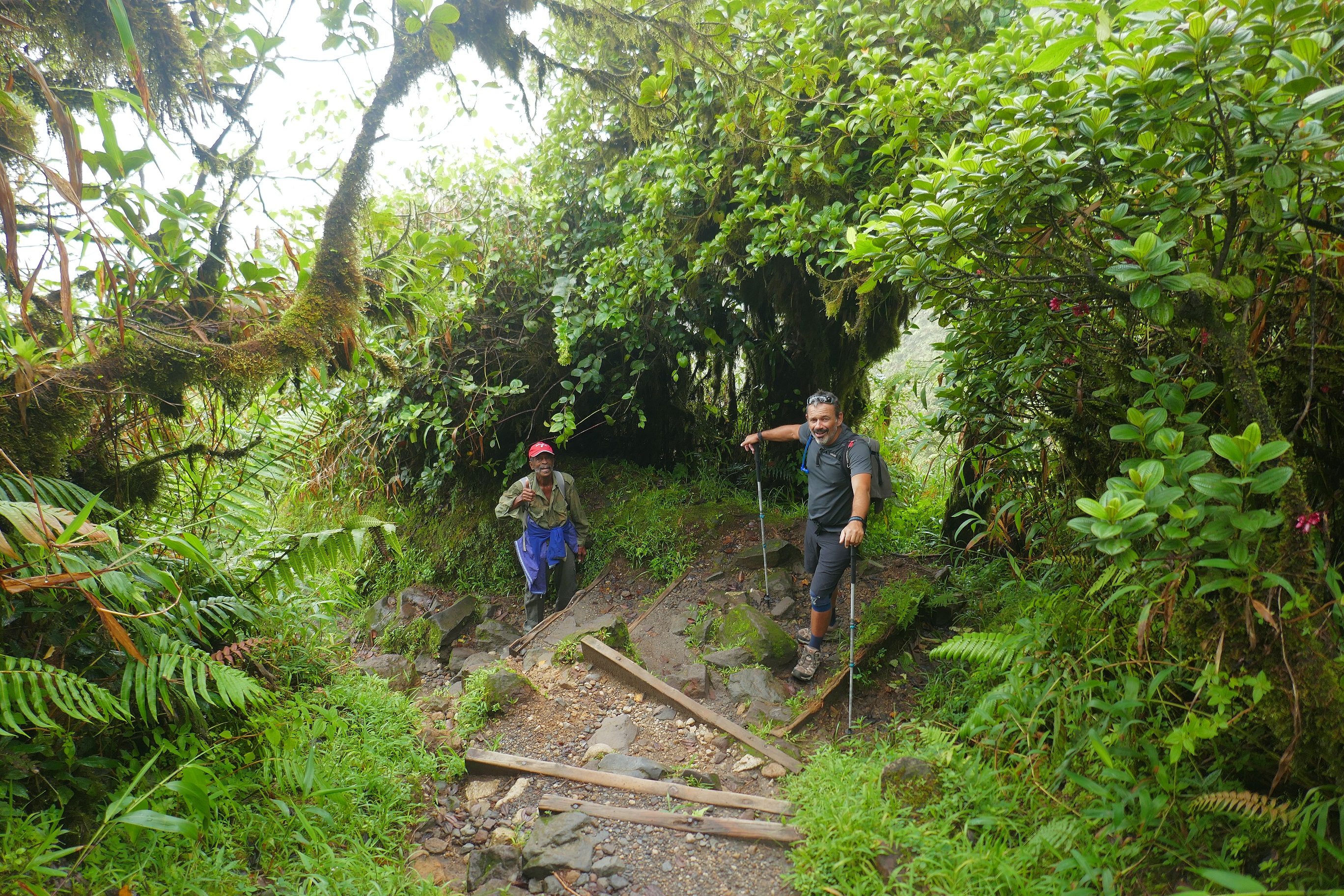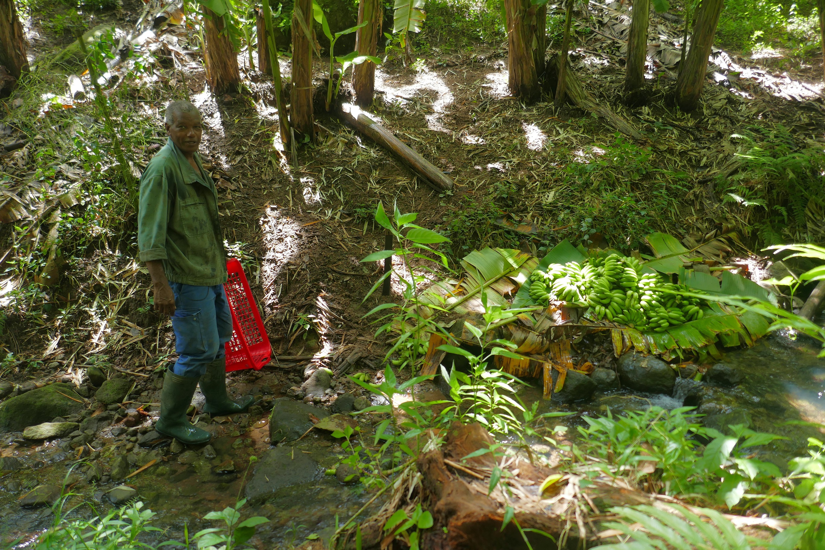 Nous randonnons dans la forêt humide de Cœur Bouliki, saturée par le chant des oiseaux et le son de multiples cascades (en cette saison, les sentiers sont humides et glissants; le Capitaine y a laissé son tee-shirt fétiche lors d’une chute : plus de peur que de mal).