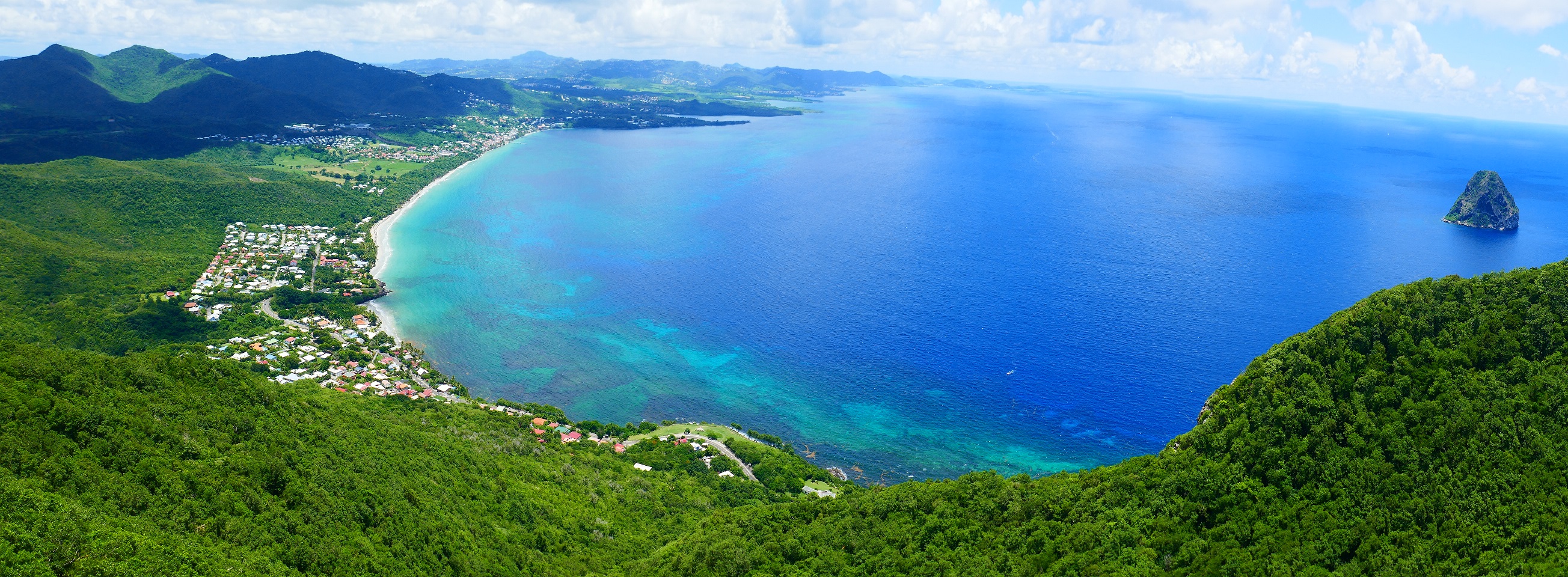 L’intérieur de la Martinique est tapissé de forêts tropicales d’où émergent des sommets verdoyants, comme les Pitons du Carbet.