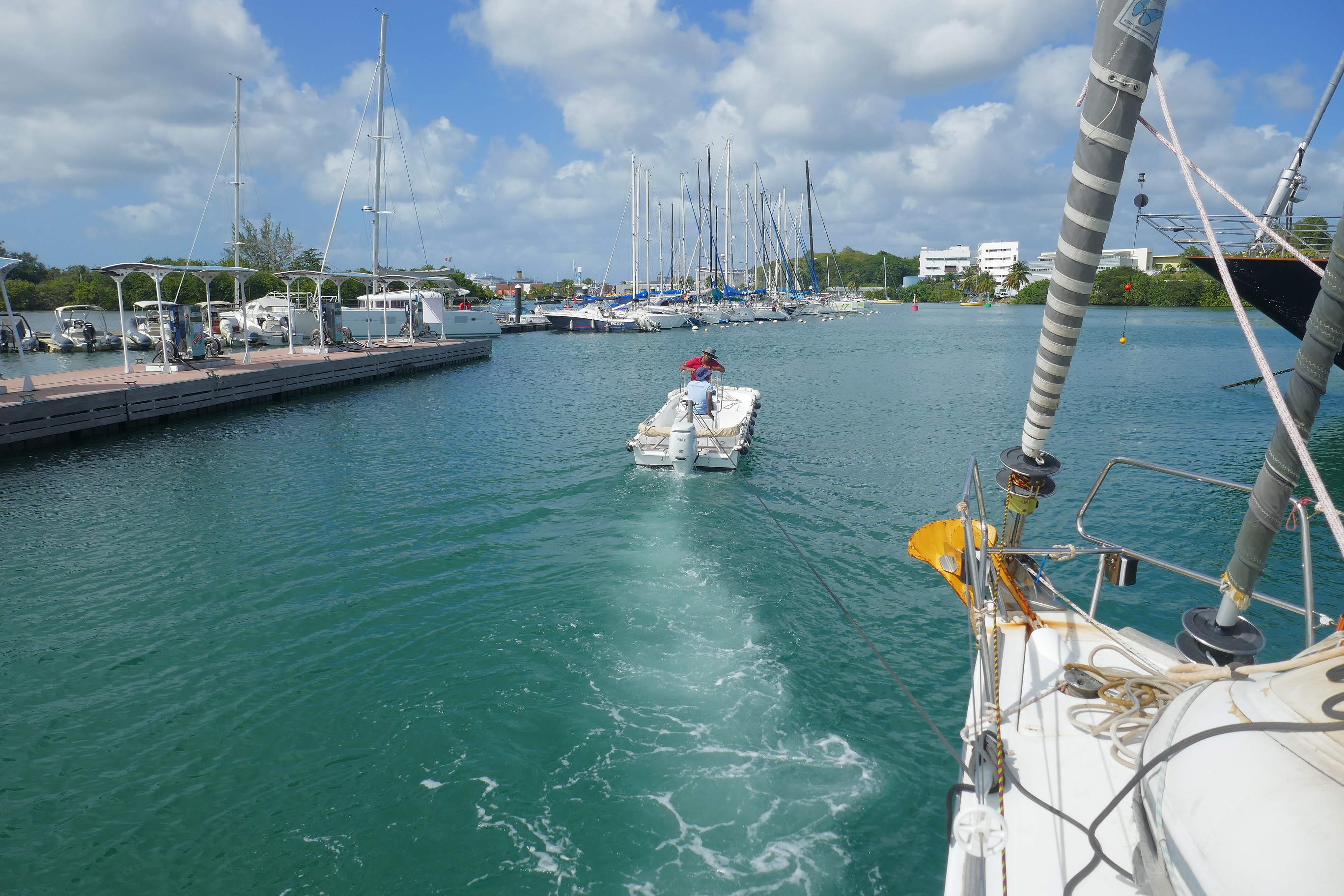 Nous reprenons la direction de Pointe-à-Pitre, où l’on nous a confirmé que le cône (à priori la pièce défaillante) est en stock… 10 heures de près serré en 4 bords, pour arriver dans une Marina bondée : Mangaliz est à couple dans la zone technique. Pas très fun!