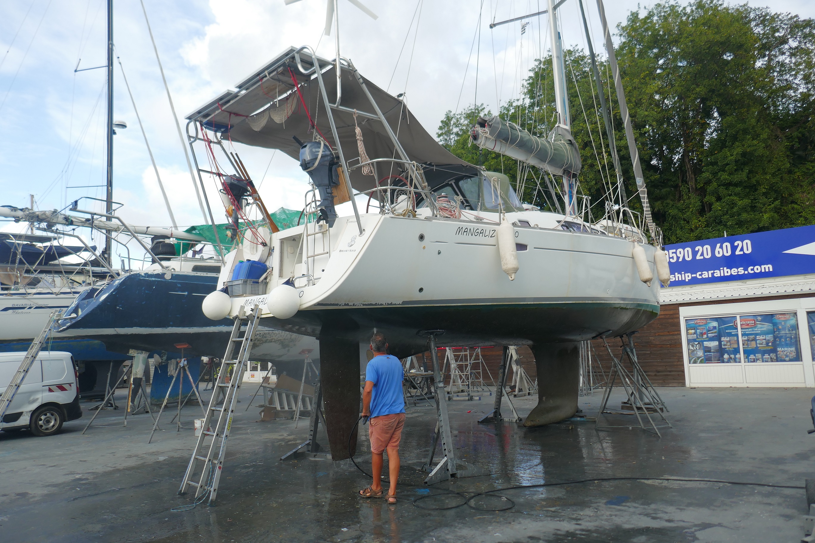 Mangaliz est remis à l’eau en temps et en heure, propre et à nouveau opérationnel pour de nouvelles aventures. Merci à toute l’équipe technique et à la Marina de Pointe-à-Pitre pour leur professionnalisme et leur fiabilité.