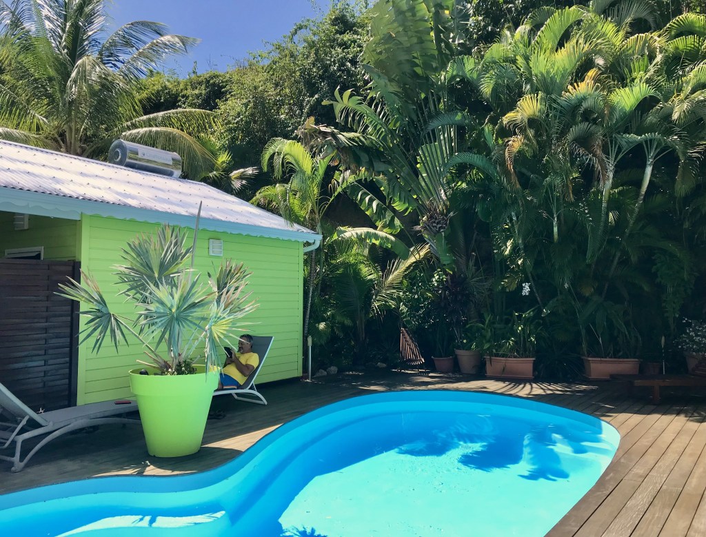 Pour éviter de vivre perché, nous logeons dans un studio noyé dans un jardin magnifique ! Les propriétaires sont des nantais qui ont fréquenté le même lycée que Sylvain, à 3 ans d’intervalle. Ils ont vécu 4 ans en Polynésie à bord de leur voilier, avant d’acheter cette belle propriété à Pointe-à-Pitre (1 studio et 3 bungalows en location + leur résidence principale). Évidemment, nous avons plein de choses à nous raconter autour d’un apéro… très sympa. Notre vie de nomade ne nous dit pas si nous nous reverrons un jour, mais nous l’espérons…