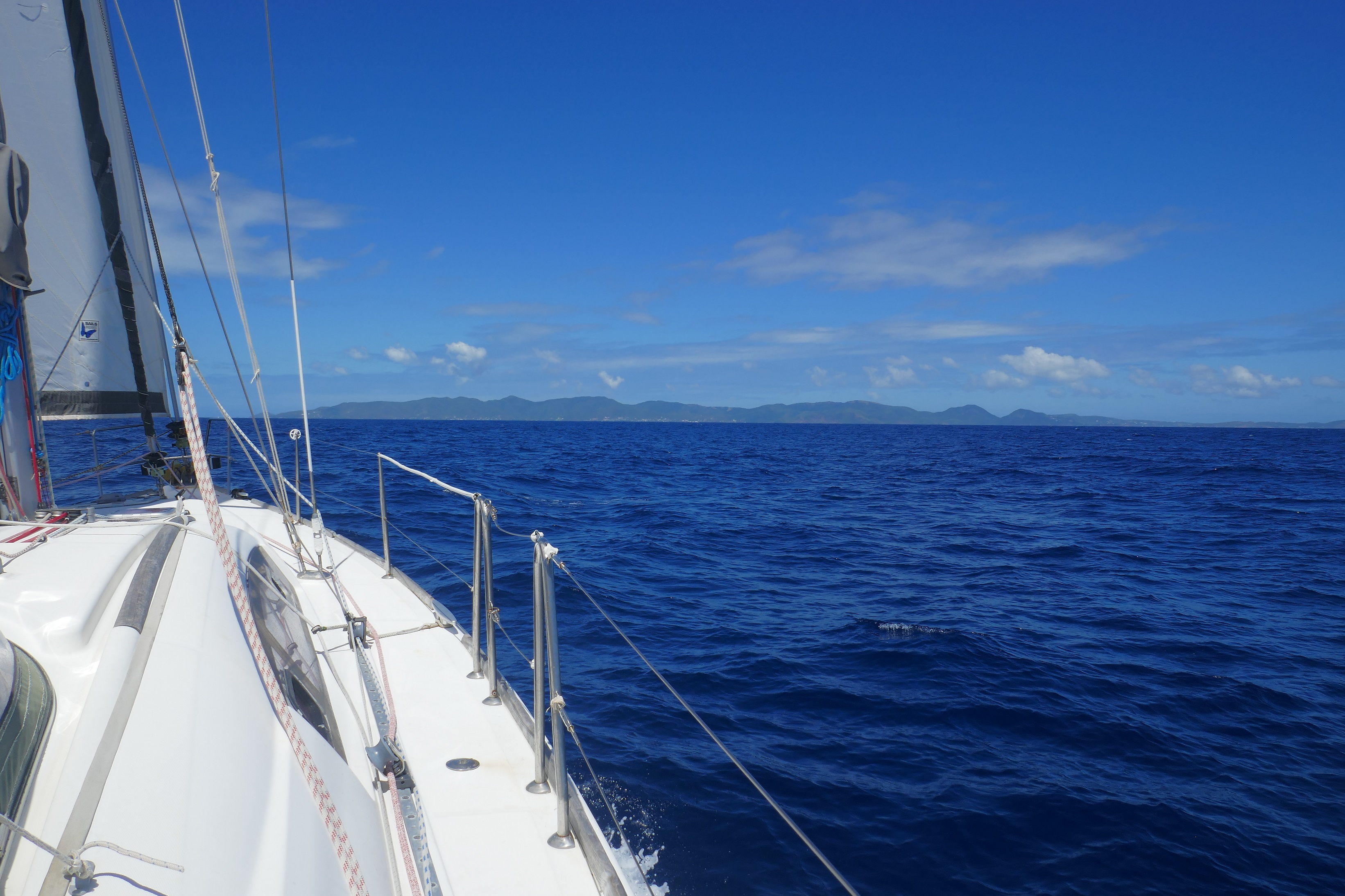 Nous n’avons pas l’habitude d’avoir si peu d’eau sous la coque (6 M de profondeur) et cette couleur d’eau turquoise, à 2 miles des côtes.