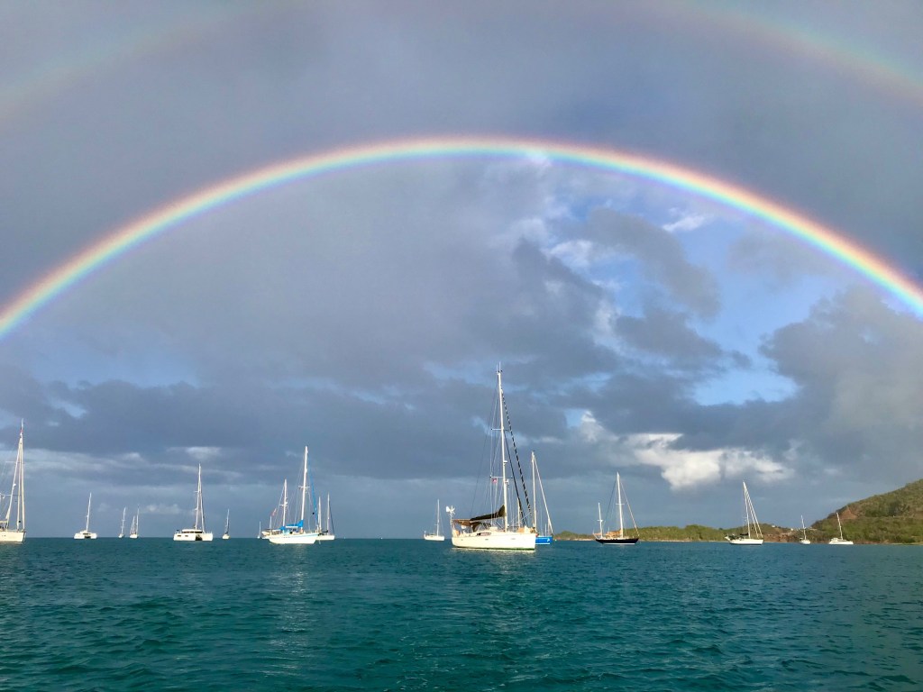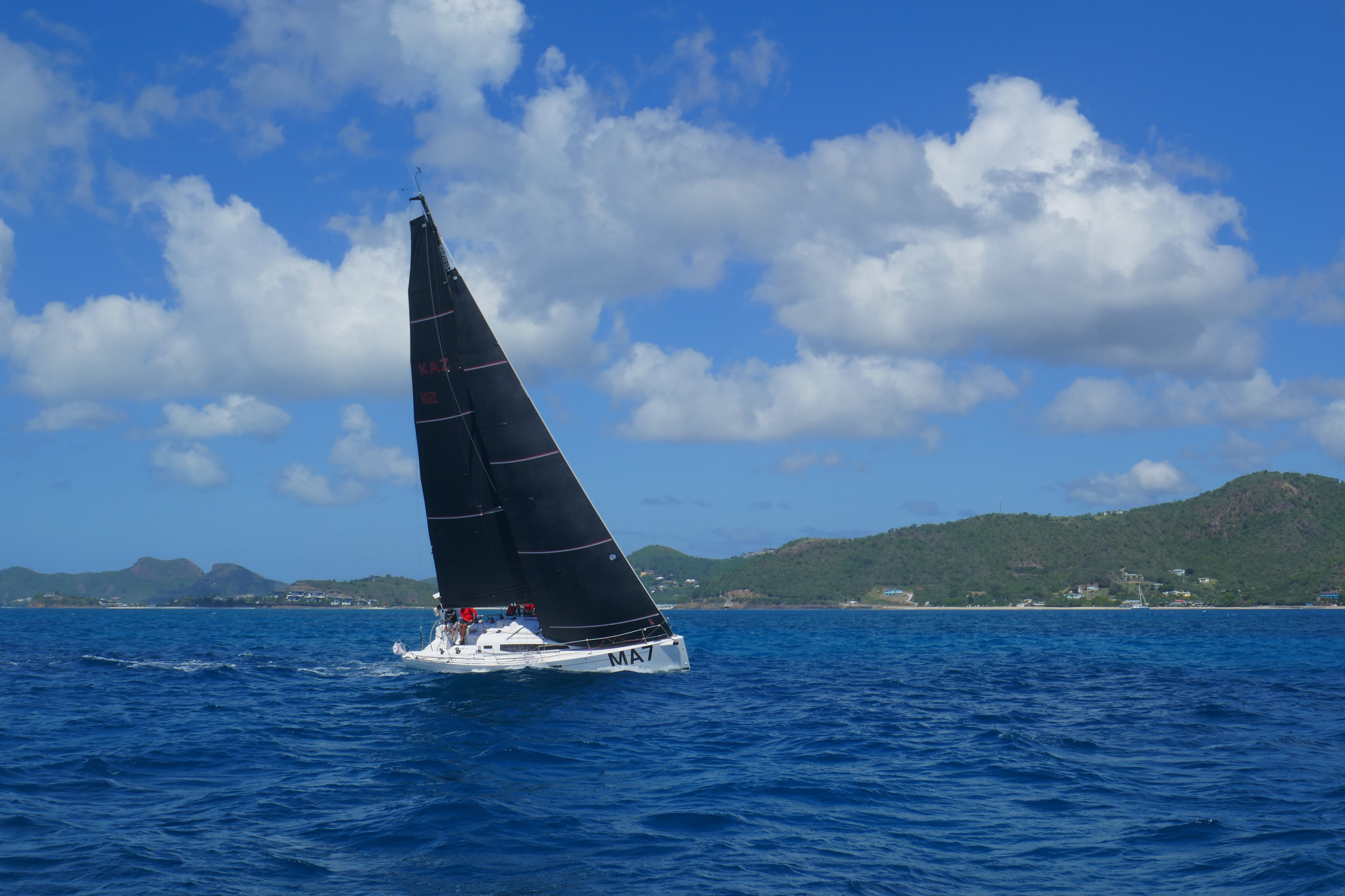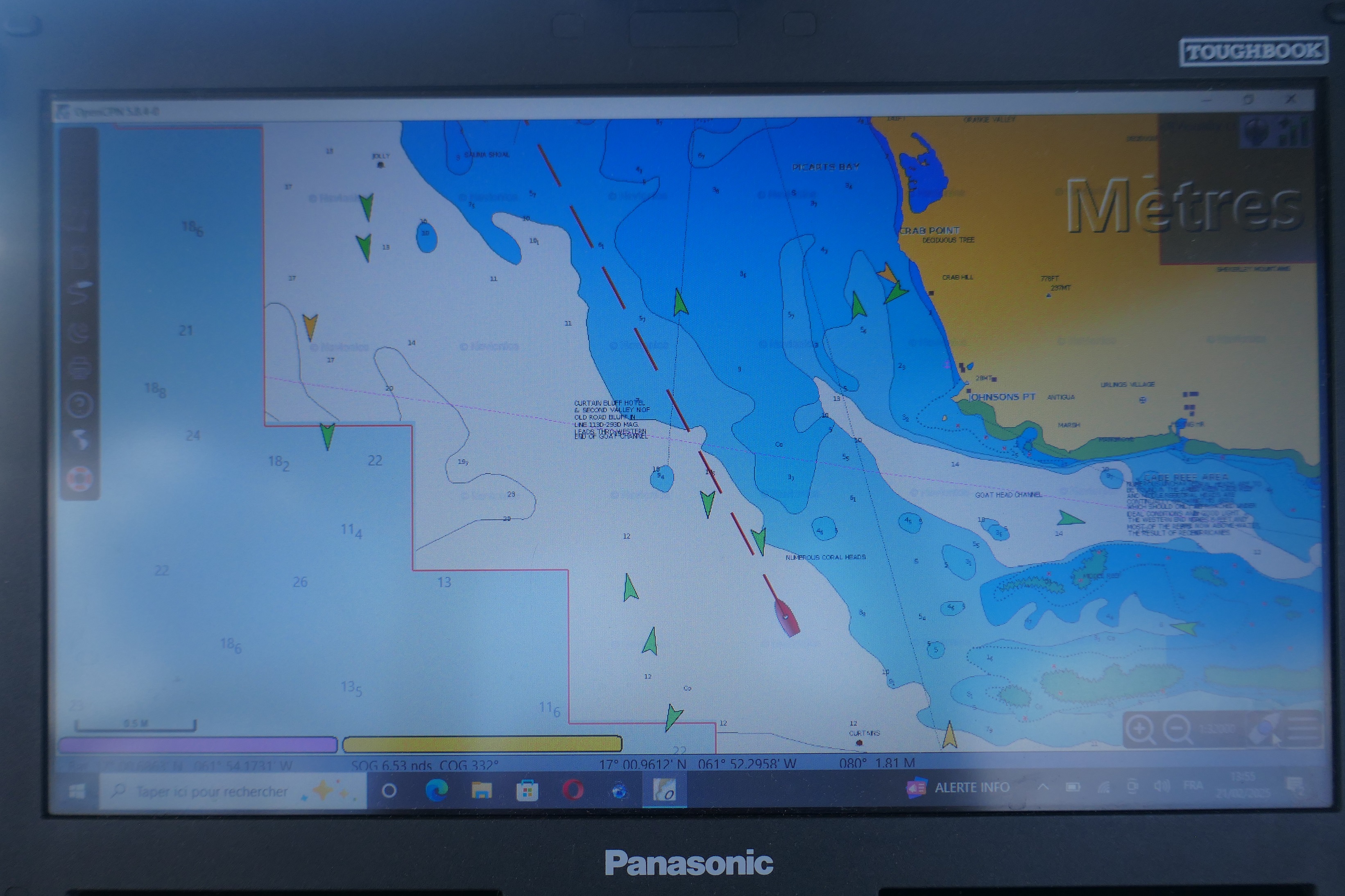 Départ donc pour l’archipel d’Antigua-et-Barbuda; dans le canal (bras de mer entre la Guadeloupe et Antigua), Mangaliz remonte les sept voiliers partis avant nous. Sa coque ultra propre le fait glisser… Une agréable navigation au portant (50 miles nautiques) nous mène en début d’après-midi sur la côte Ouest d’Antigua. On y croise de superbes voiliers en entraînement pour la régate internationale « RORC 600 » dans quelques jours.