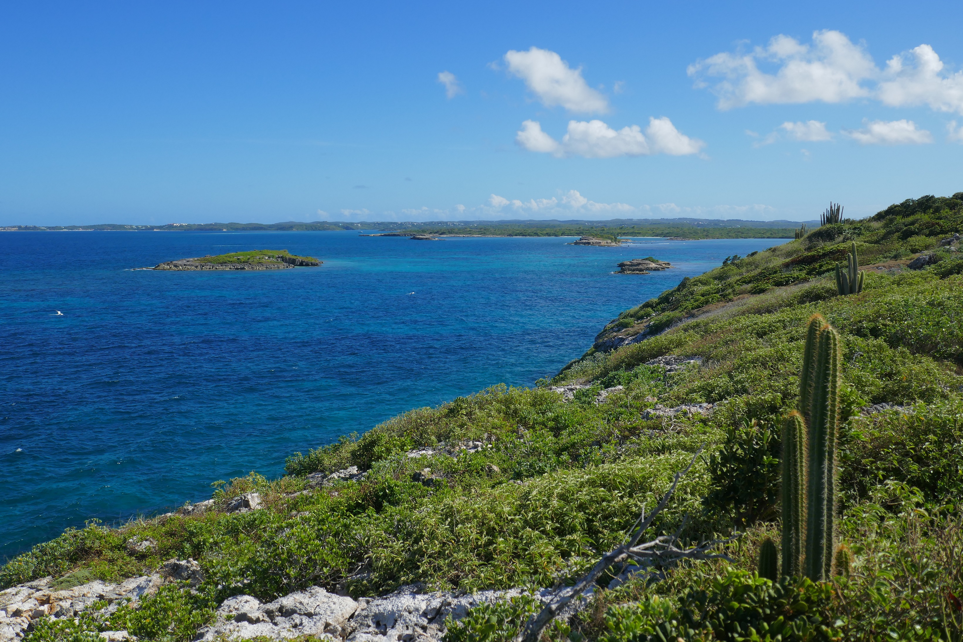 Avant de quitter Antigua, nous passons de l’autre côté de l’île (côte Est) pour mouiller dans le lagon de North Sound. Abrité par une grande barrière de corail et quelques îlots, l’entrée se fait par un étroit chenal, régulièrement dragué pour maintenir une profondeur suffisante; à l’intérieur, on navigue à vue pour éviter de nombreuses patates de corail. Les fonds truffés de poissons et langoustes, ont été très abîmés par l’ouragan IRMA en 2017, et l’on constate la naissance de nouveaux coraux. En revanche, les îles et îlots comme délicatement posés sur ce dégradé de bleu, sont de toute beauté !