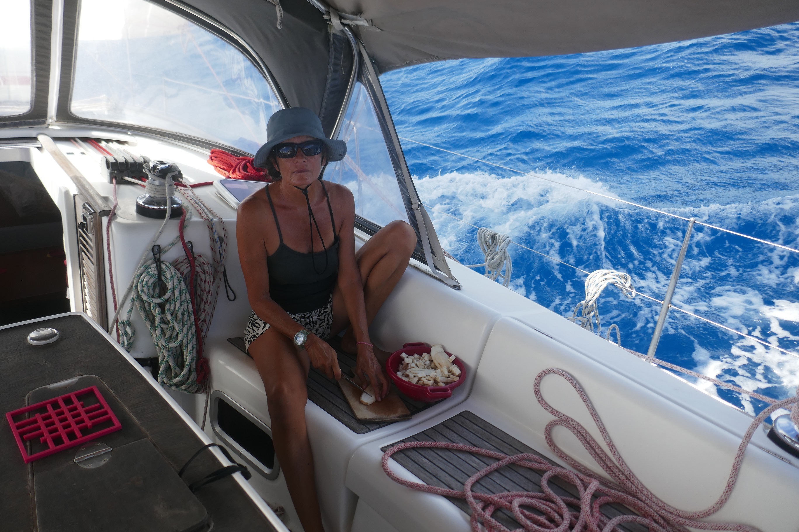 Escales à PETER ISLAND, petite île quasiment inhabitée avec plusieurs mouillages sauvages où il fait bon écouter les biquettes, mais pas que ! Depuis 1,5 an sous les tropiques, Mangaliz souffre (coutures diverses que l’on fait réparer au fur et à mesure, tissus et pièces en plastique usés par le soleil). A quelques semaines de la transat, une poignée de hublot à l’avant nous est restée dans les mains, brillamment réparée par le Capitaine.
