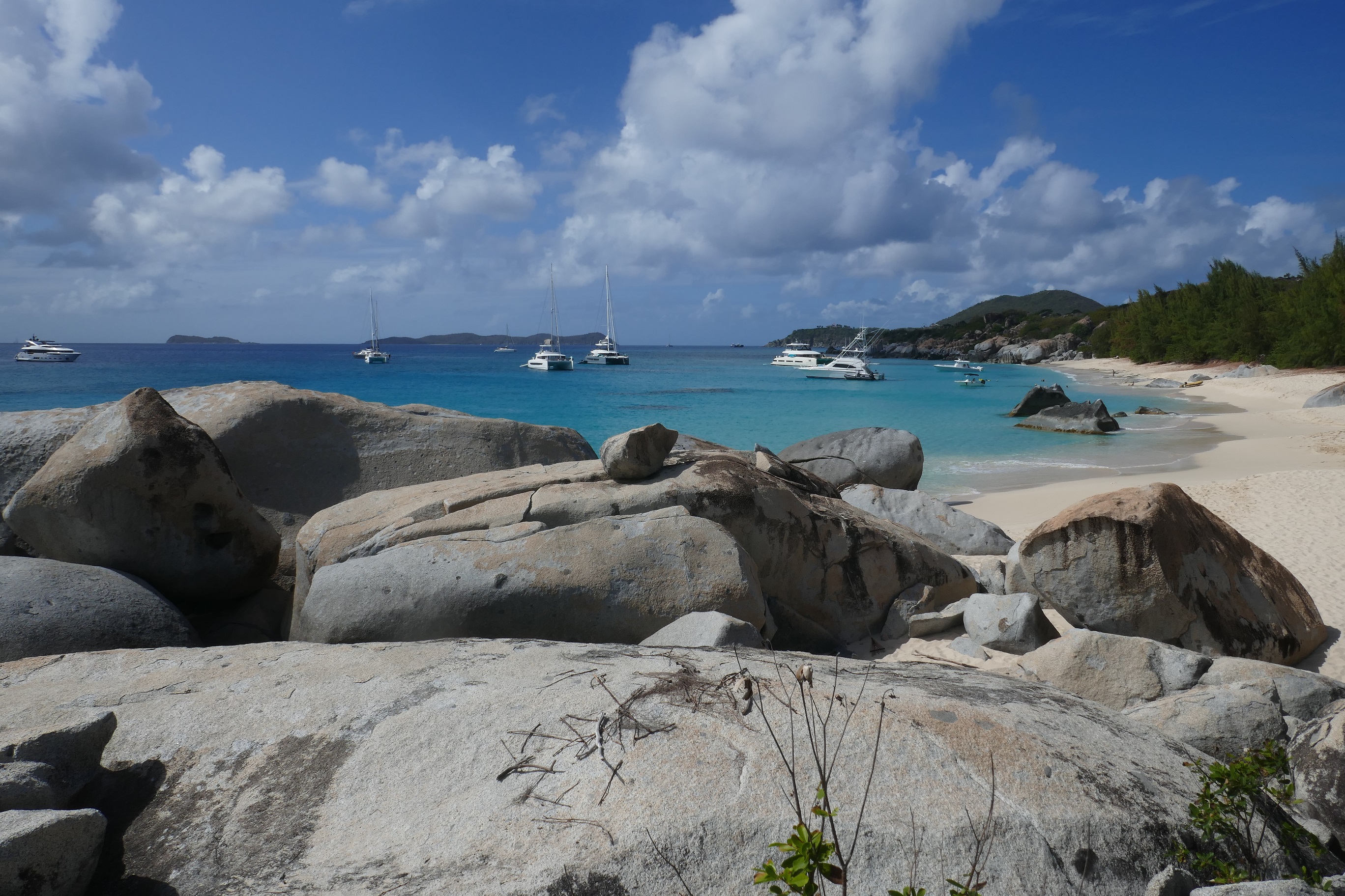 Un an après, nous retournons mouiller aux Baths, une merveille géologique qui fait penser aux Seychelles.