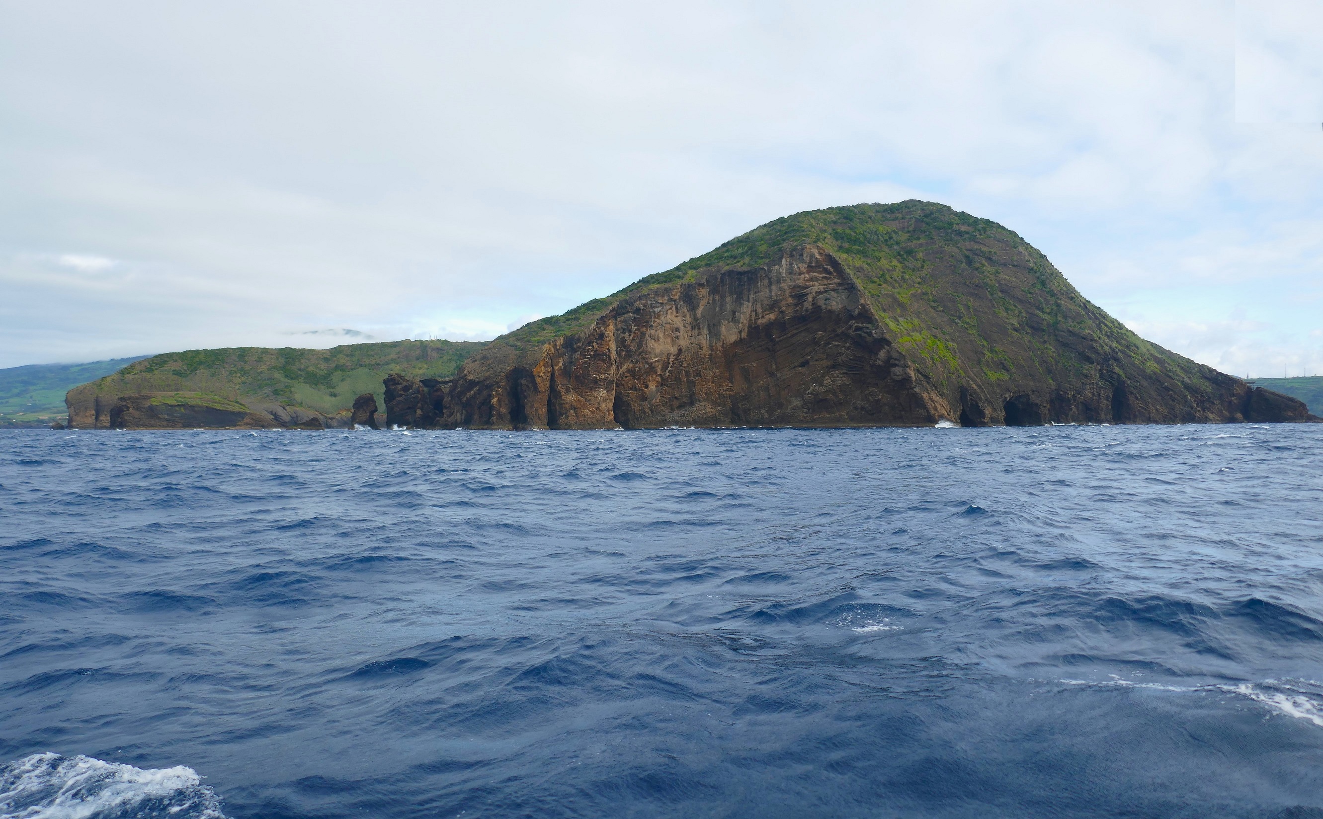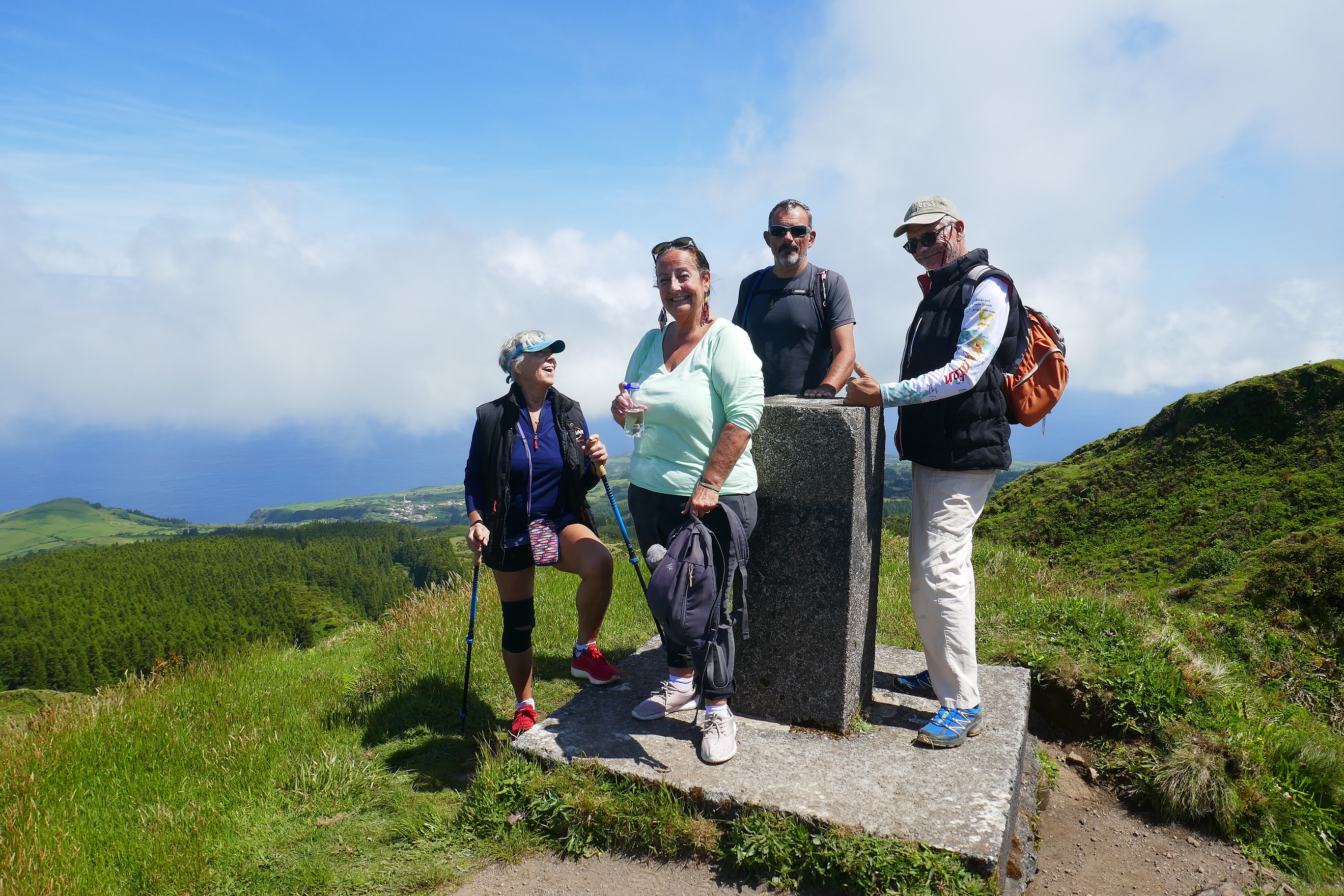 D’origine volcanique (800.000 ans), le sommet de l’île culmine à 1043 M d’altitude et surplombe une Caldeira de 2 Kms de diamètre et 400 M de profondeur (éruption datant de 15.000 ans environ). On y randonne avec nos amis du bateau Bigouden retrouvés à Horta, après s’être suivis par mail via le téléphone satellite pendant toute la Transat + le mont Pico au fond.
