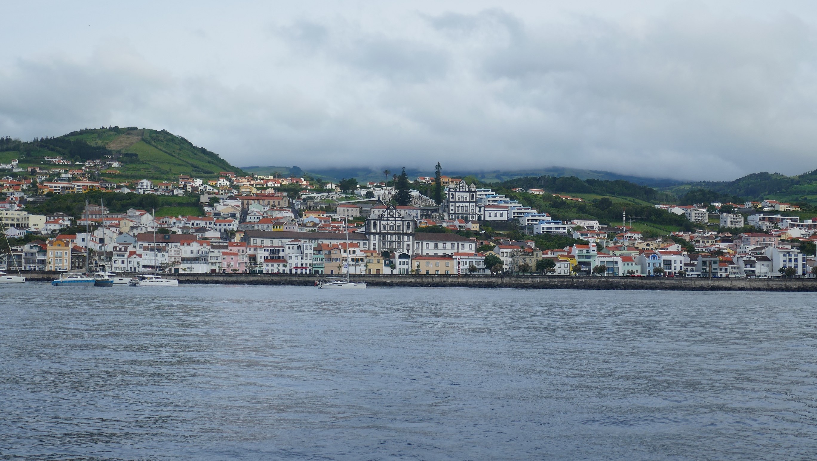 Horta, le lieu de rassemblement des marins traversant l’Atlantique ! La Marina est pleine à craquer, le mouillage aussi. On finit par trouver une petite place à l’ancre pour Mangaliz, sous la pluie et dans le vent ! Bienvenue aux Açores; après les Antilles, le changement de météo est brutal !