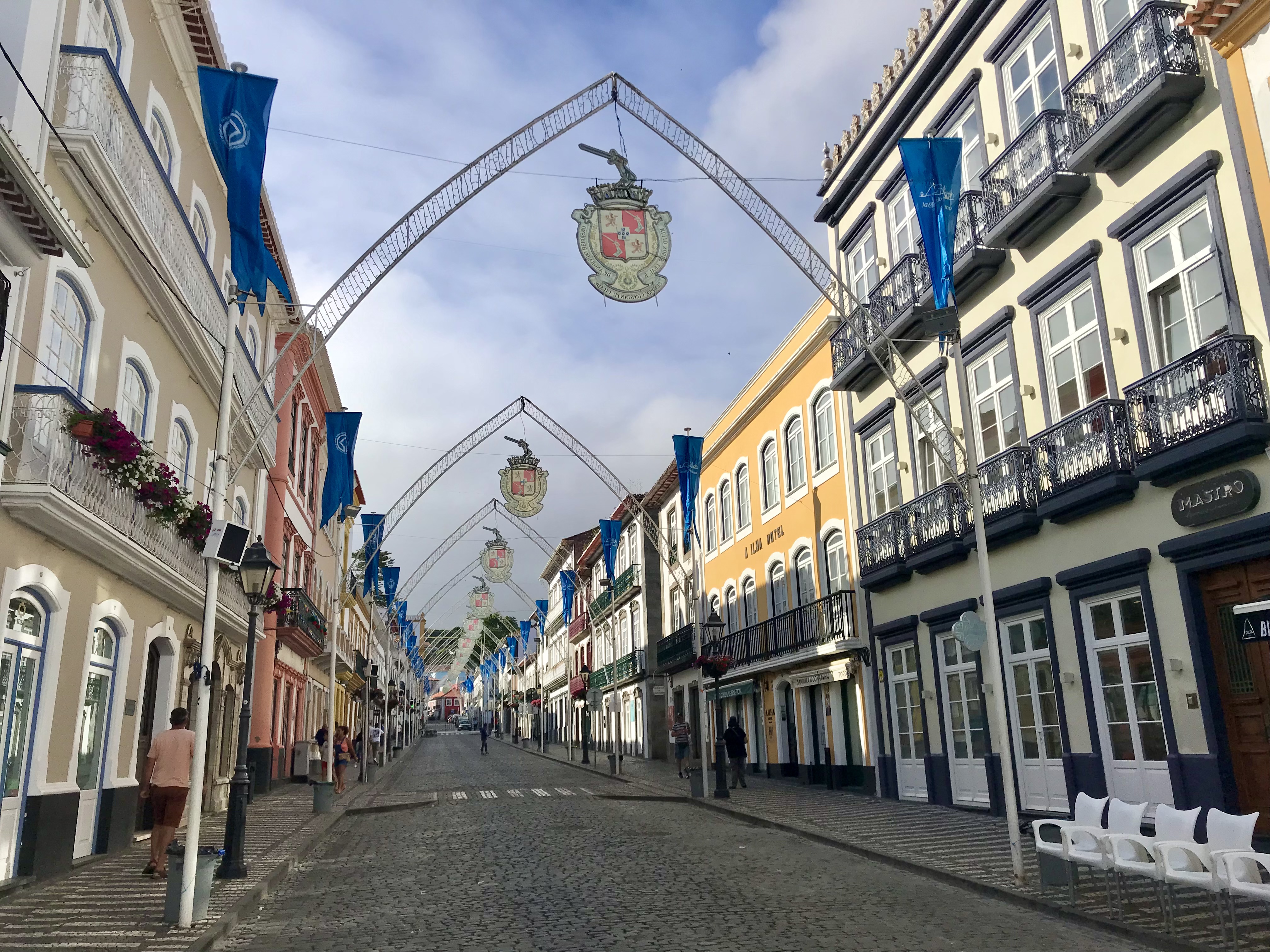 On ne se lasse pas de déambuler dans les rues pavées d’Angra, aux maisons multicolores dont l’architecture date du XVI et XVIIème siècles (classée au patrimoine mondial de l’UNESCO). Elle a été deux fois capitale du Portugal… Aujourd’hui, l’archipel des Açores est un territoire Portugais avec un statut autonome depuis 1976 (il a son propre gouvernement).