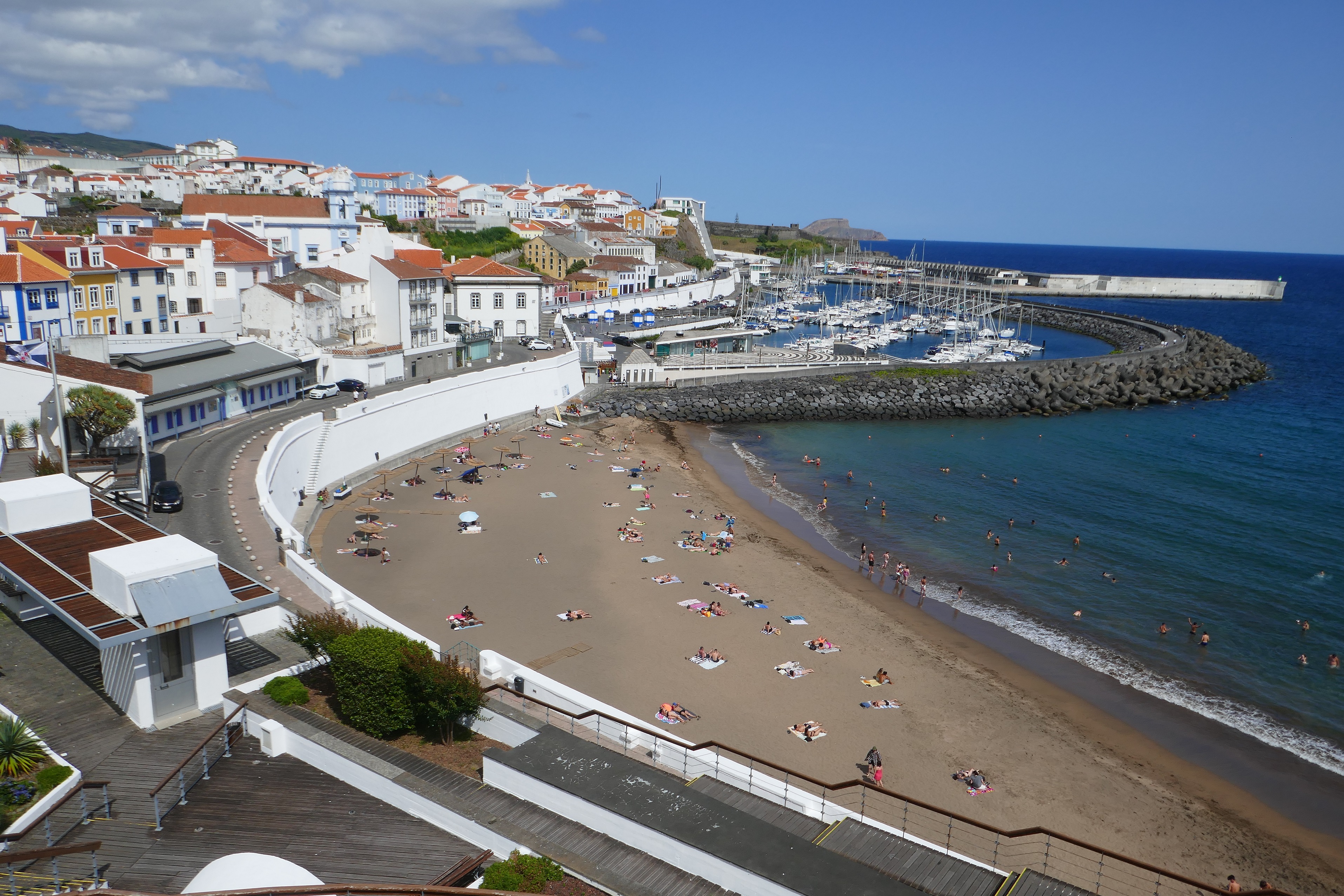 De retour à Terceira après notre virée à l’île de Graciosa, nous mouillons dans la ville de Praia da Vitoria, plus petite et plus calme qu’Angra.