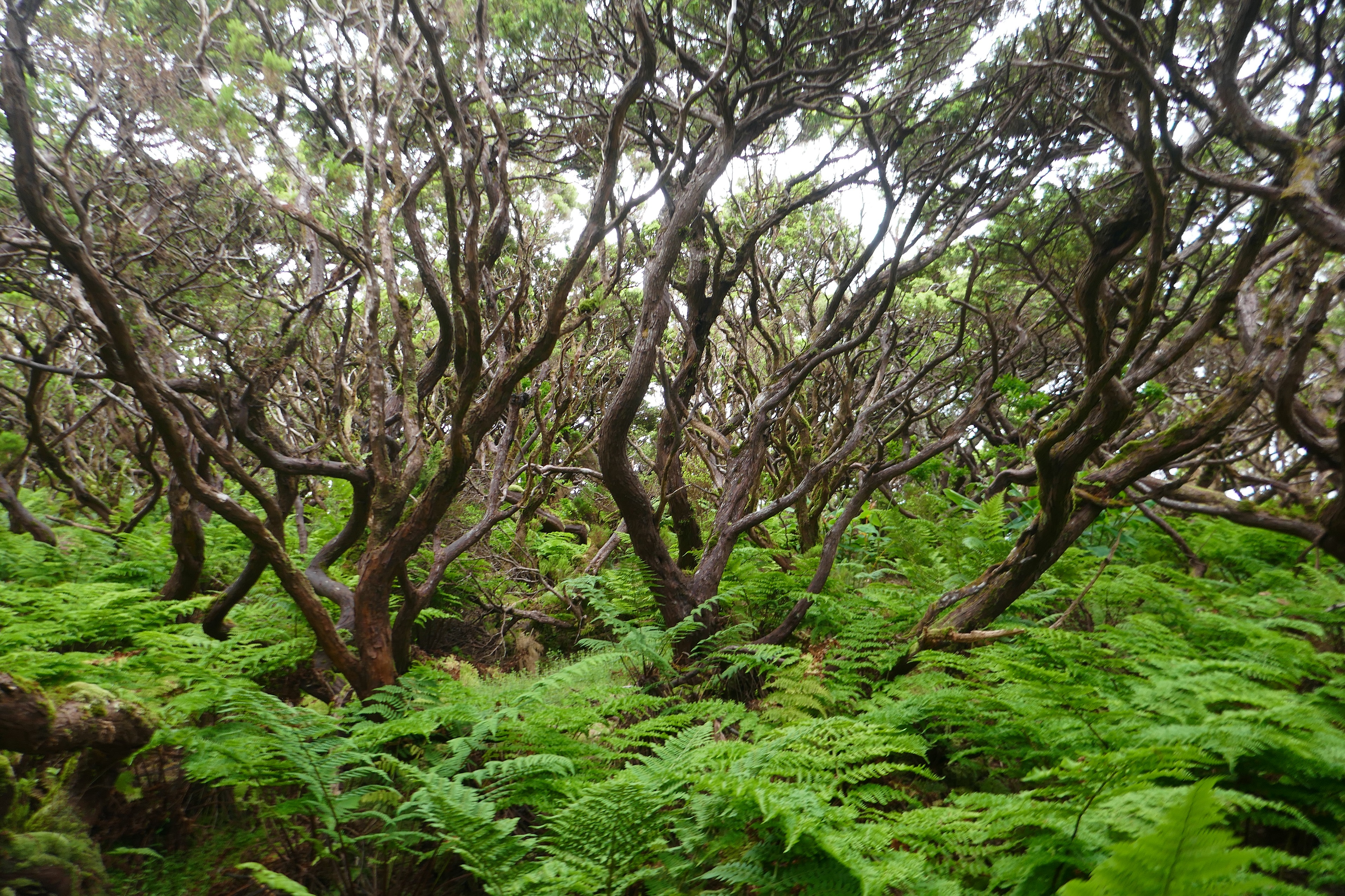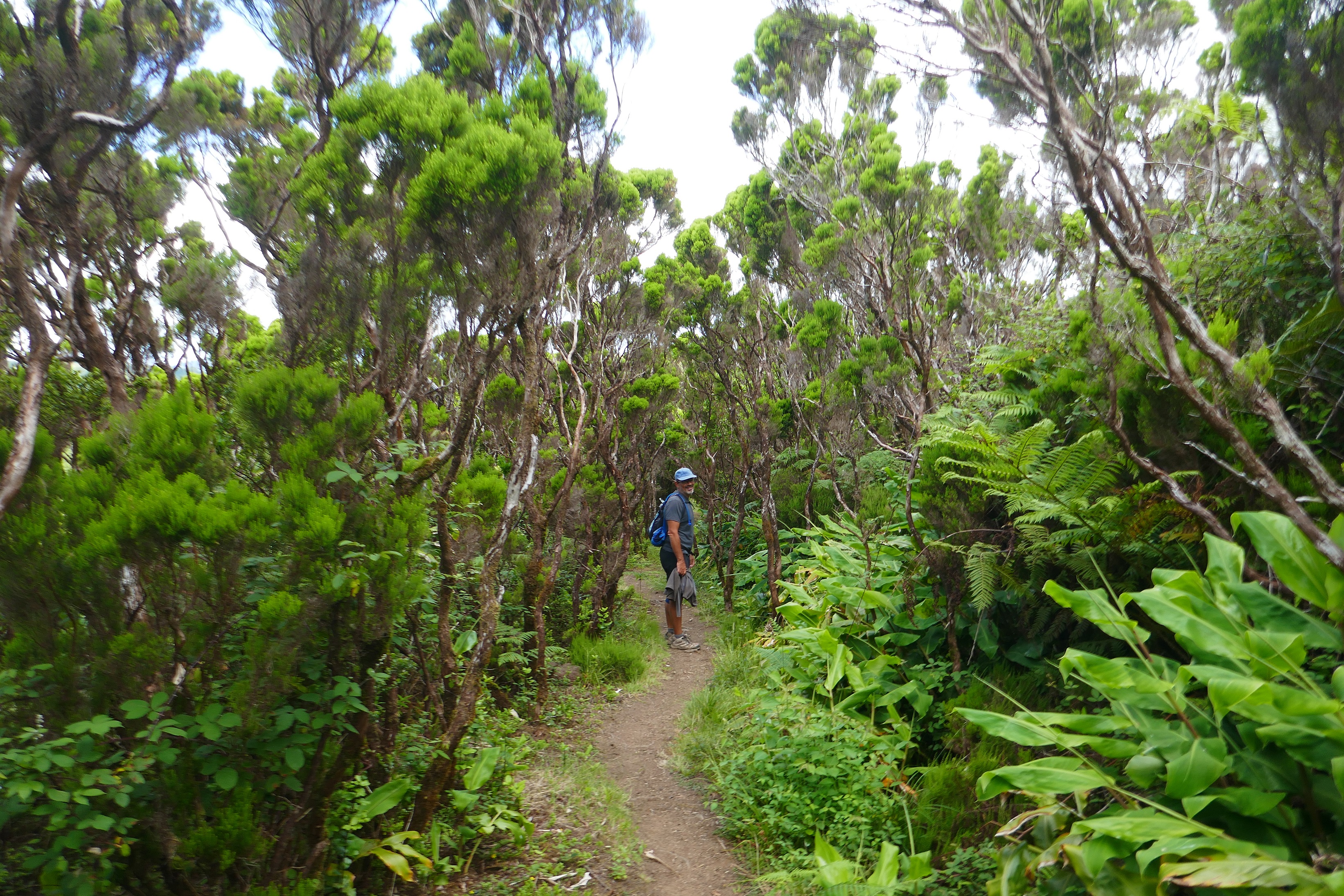 Passagem das Bestias : anciennes pistes de charrette à bœufs au milieu d’une végétation endémique, parfois fantomatique ! Pâturages au fond de la Caldeira do Guilherme Moniz (créée il y a 20.000 ans).