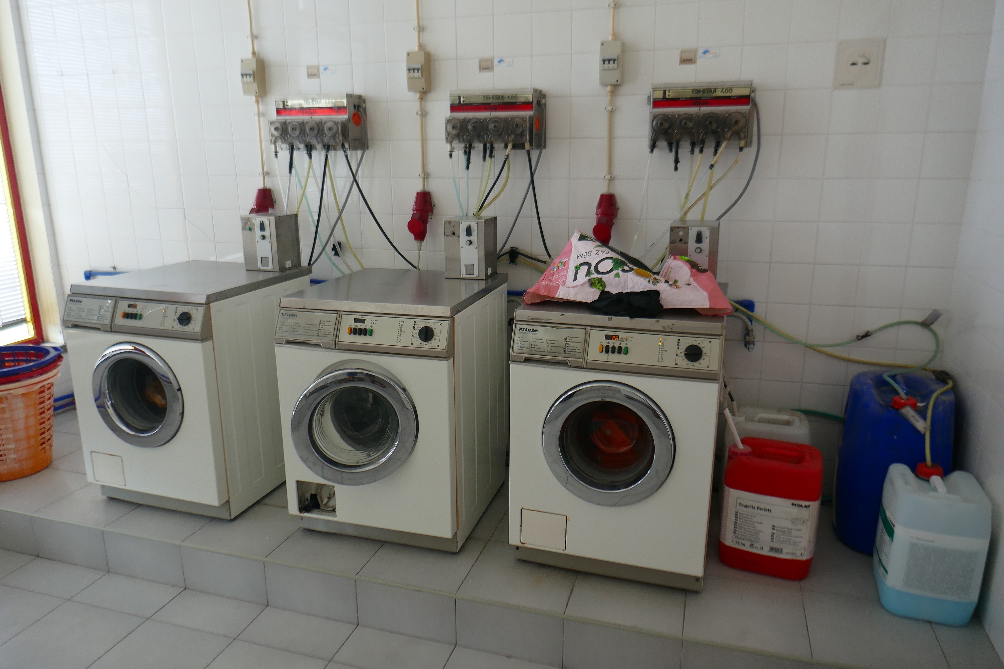 Son petit port est plein; nous restons au mouillage pendant toute la semaine. Lessives avec des machines à laver hors d’âge, marché de fruits et légumes locaux.