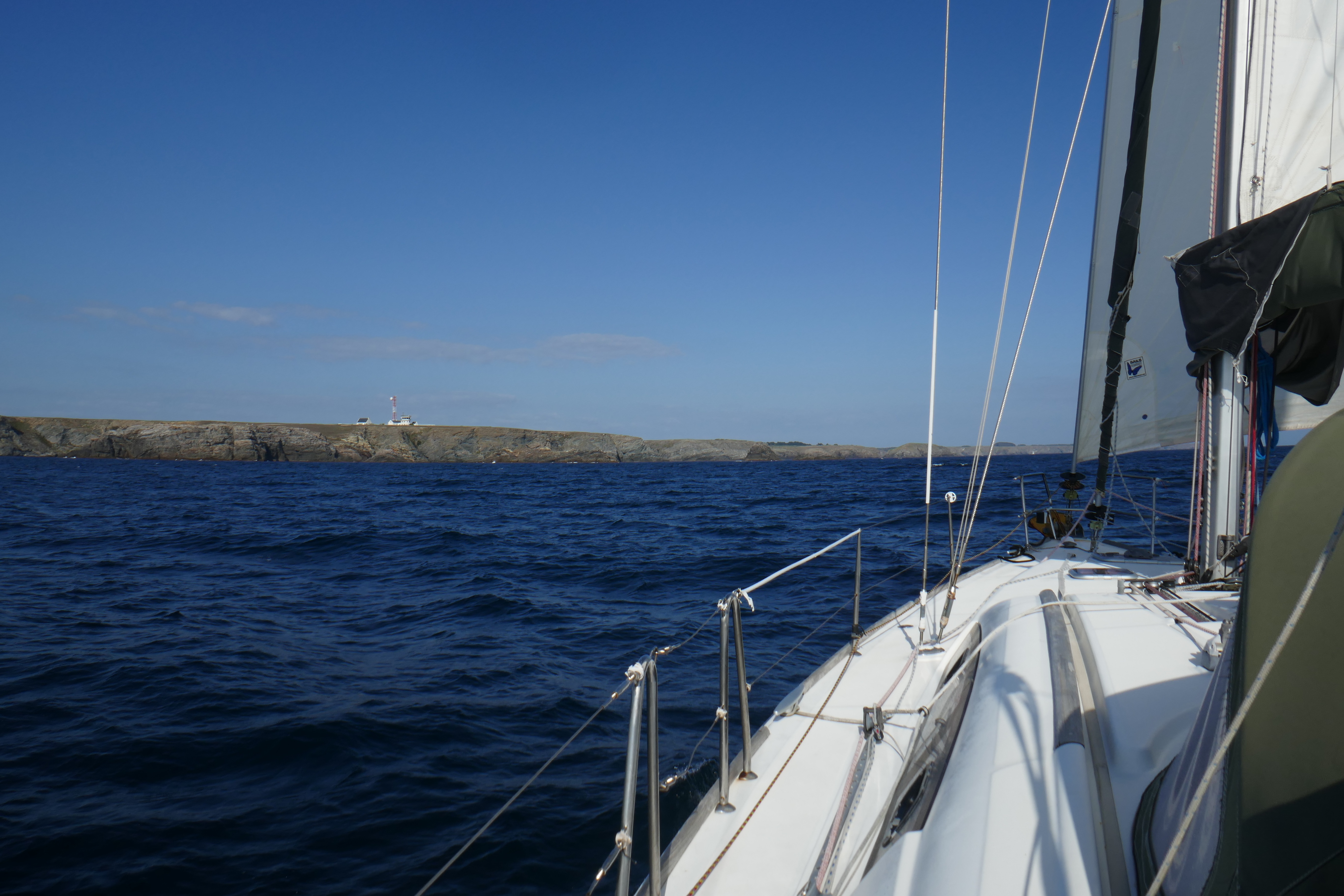 Le 10ème et dernier jour dans l’après-midi, nous sommes émus d’apercevoir Belle-Ile-en-Mer. Les conditions sont parfaites pour une arrivée à Port Kerel, ce même mouillage d’où nous sommes partis le 21 Avril 2021.